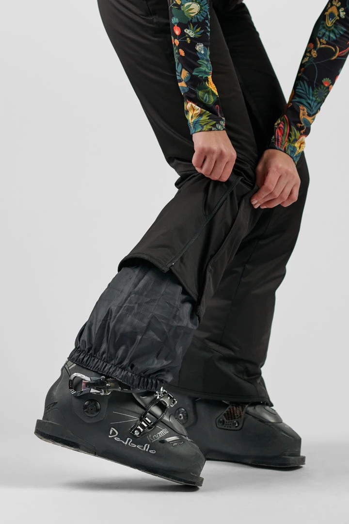 Защита брюк от попадания снега и молния для удобства носки с горнолыжными ботинками и повседневной обувью.